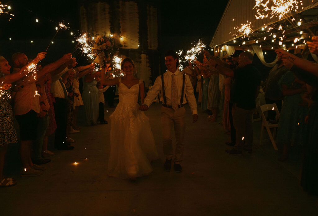 Nothing could stop this dance floor! These friends and family know how to HIT that dance floor, busting a move to square dances, cozy slow dances, and of course the classic dance floor bops. Desserts and Mennonite champagne was served, and enjoyed on the floor under the Edison bulb light. Olivia and Connor ended the night with a sparkler send off, straight to their getaway Jeep!